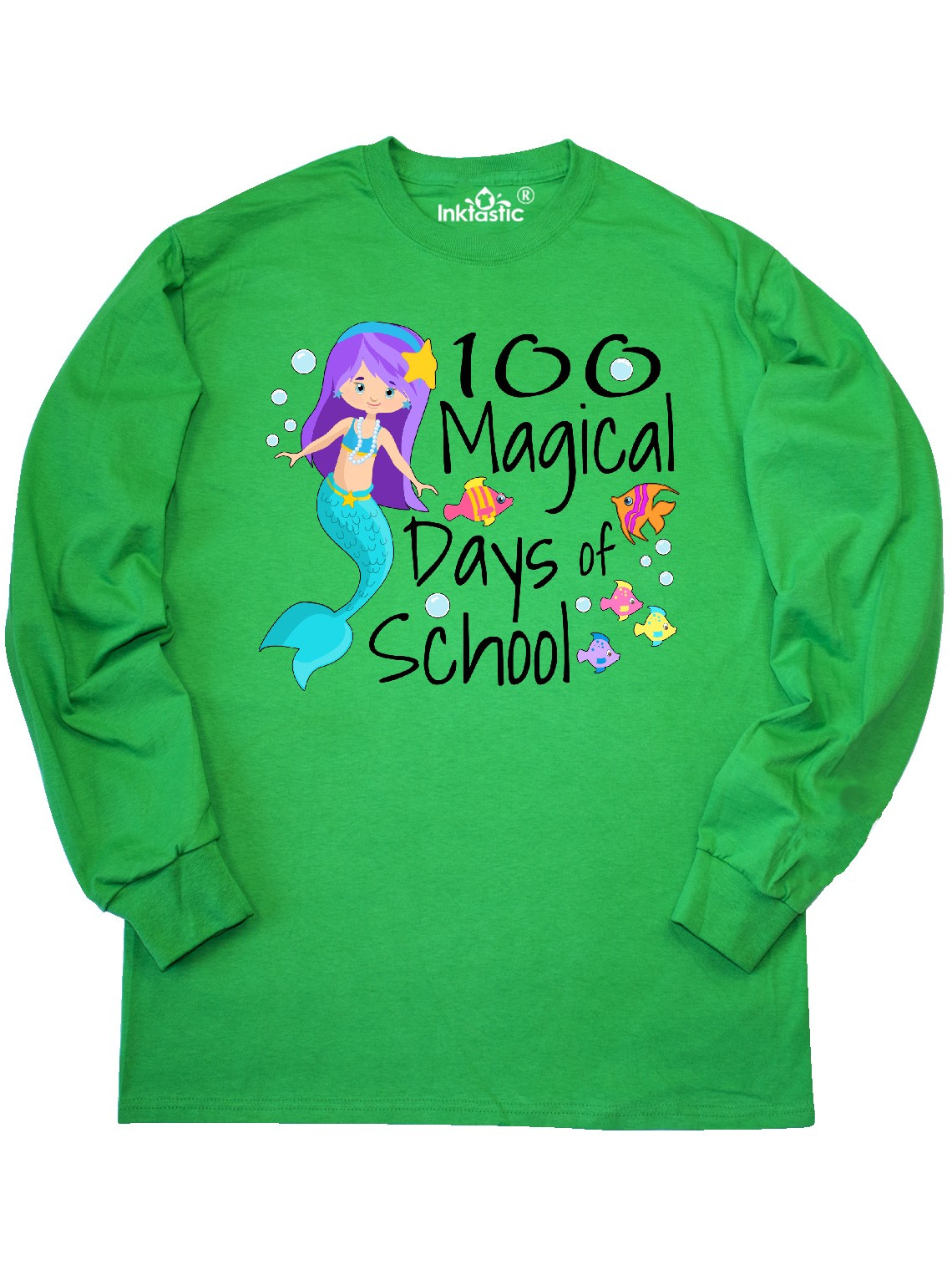 Inktastic 100 Magical Days Of School With Blue Mermaid And Fish Long Sleeve T Shirt Walmart Com